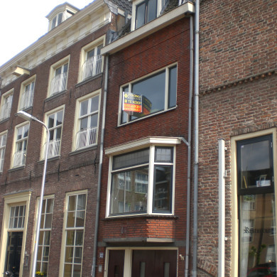 In oorsprong twee XVI PANDEN, overeenkomend met het links aansluitend viertal, XVIII samengevoegd onder schilddak en voorzien van gecombineerde kroonlijst met trigliefenconsoles. Vensters met geprofileerde natuurstenen onderdorpels, strekken. Aangepaste pui. XVII-XIX.