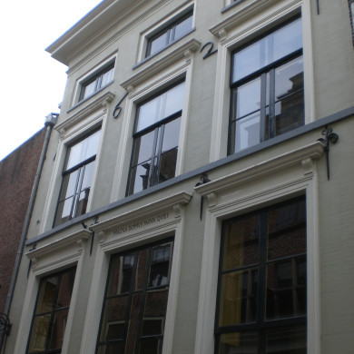 Fors onderkelderd pakhuis met gedeeltelijk in natuursteen gedekte klokgevel, in jaartalankers gedateerd ao 1612. De vensters der verdiepingen met luiken behangen; hijskap in de top. Hoge pui van het oorspronkelijke hoge voorhuis.
