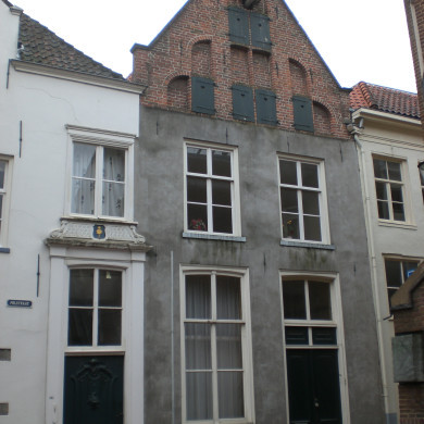 Onderkelderd huis met gepleisterde topgevel. Voordeuromlijsting met consoles en rococo-ornament; gesneden kalf en dito bovenlicht. Empire venster met gesneden middenstijl; geprofileerde natuurstenen dorpel. Getoogd kelderlicht. XVIII.