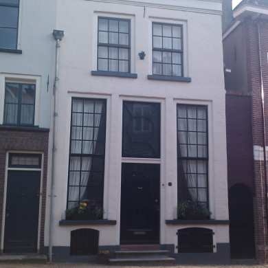 Hoekpand met geverfde lijstgevels. XVIII/XIX.