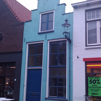 Fors HOEKPAND met aan de achterzijde fraai bewaarde in jaarankers 1634 gedateerde tuitgevel, voorzien van muizetand, vlechtingen en kleine vensteropeningen.
