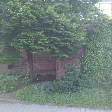 Pand, waarin wellicht een deel van de laat-middeleeuwse stadsmuur bewaard is gebleven.