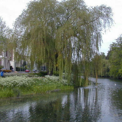 Huis met in- en uitgezwenkte topgevel voorzien van vijf verminkte pilasters; natuurstenen waterlijst en bakstenen tandlijst. Op de verdieping moeten van vroegere vensters. Hijskap. Pui geheel gewijzigd. XVII A-XIX.