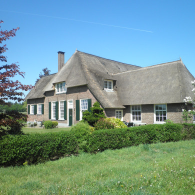 Boerderij op L-vormige plattegrond. De korte vleugel met onderkelderde opkamer. Dak met riet gedekt. Vensters voorzien van roedenverdeling met luiken.