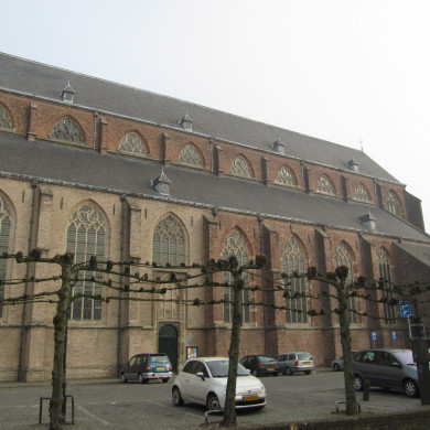Hervormde of St. Maartenskerk. Driebeukige, laatgotische basiliek van het Nederrijnse type, zonder transept en met koor zonder omgang. Inwendig hoofdbeuk met houten, zijbeuk met stenen netgewelven en cilindervormige pijlers. Sacristie tegen de zuiderzijbeuk bij het koor; portalen onder de toren (apart monumentnummer 12982) en in de zijbeuken, waarvan de noordelijke met goede sculptuur (o.a. geestige zwikvullingen). Bouwtijd: XVId-XVIa (koor 1517-'21). Zeer zware oorlogsschade in 1945. Restauratie: 1919-1930 onder W. te Riele en N. de Wolf. Sinds de oorlog andermaal hersteld. Inventaris: preekstoel, doophek, gestoelten, alles XVII B. Orgel met vier klavieren en vrij Pedaal. In 1916 gebouwd door E.F. Walcker voor de voormalige Gereformeerde Nieuwe Zuiderkerk te Rotterdam.