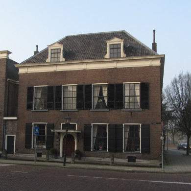 Statig hoekpand (ca. 1800) op de hoek van de Koepoortwal. Omlopend schilddak, waarin dakkapellen met frontons en vleugelstukken, kroonlijst met triglyphen en metopen. Deur met bovenlicht en gesneden zwikken; vensters met roedenverdeling uit de bouwtijd. Stoep met fraaie palen en kettingen.