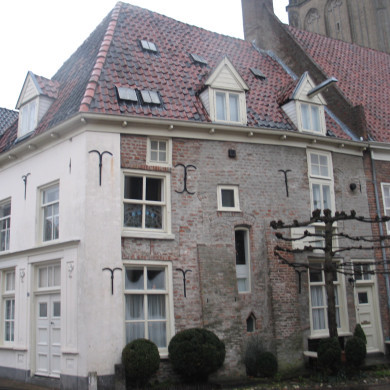 Hoekpand Bresstraat. Breed patriciershuis (XVIII) met zadeldak. Muurankers. Het huis dateert in oorsprong uit XVI. De gepleisterde gevel aan de Kosterstraat heeft geprofileerde vensterdorpels, een deurpartij met bovenlicht en pilasters, gesneden deur en Empireramen.