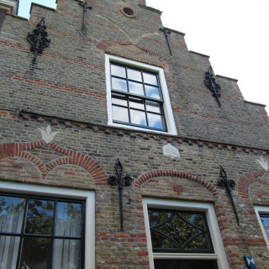 HUIS met trapgevel door gevelsteen gedateerd 1638. Sierankers. Gele baksteen met donkerrode lagen en bogen. Muizetand, toppilaster. Benedenstuk gepleisterd.