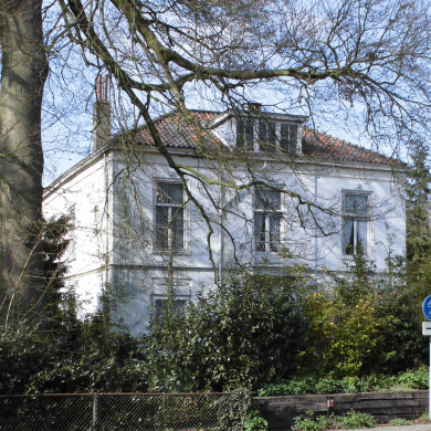Grote gepleisterde VILLA (plm 1860/70) waarvan de door lisenen geflankeerde middentravee op beganegrond en verdieping van inspringende loggia's is voorzien, waarbij de rondboog van de laatste door het achterliggende venster wordt herhaald.