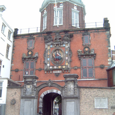 GROOTHOOFDSPOORT. Op de noordelijkste punt der oude stad gelegen poort uit ca. 1325, in de huidige vorm grotendeels uit 1618, gewijzigd in 1692 toen de huidige koepel werd gebouwd. Gerestaureerd 1925-27.