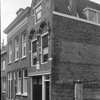 ACHTERHUIS, zichtbaar van de Kleine Spuistraat met op de hoek halfronde traptoren en achtergevel met drielichtsvenster, waarin houten kruiskozijn en smal tweelichtvenster met houten middendorpel, beide onder geblokte ontlastingsbogen in rechthoekige omlijsting en voorzien van luiken.
