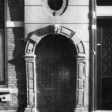 POORTJE met geblokte versiering van de omlijsting en sluitsteen met maskerconsole (XVII A).
