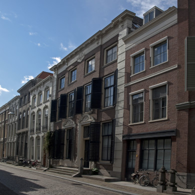 HUIS "De Sleutel". Bakstenen renaissance trapgevel (midden XVI) met geprofileerde ontlastingsbogen, waterlijsten, gebeeldhouwde consoles en muurankers. Gevelsteen boven de puibalk; sleutel met lint. Aan de achterzijde puntgevel met vlechtingen en muurankers.