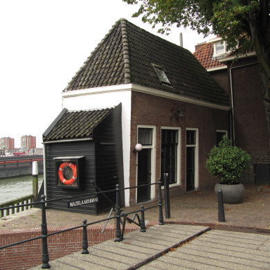 Mazelaarsbrug. Enkele gietijzeren DRAAIBRUG, na 1868, over de toegang tot het Maartensgat tussen Korte Geldersekade en Mazelaarsstraat.
