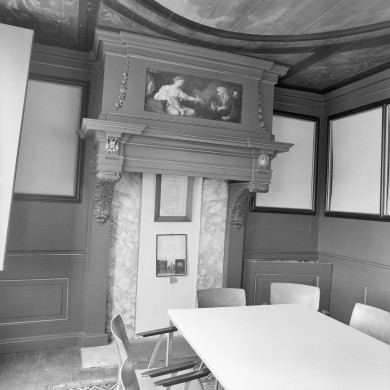 Regentenkamer met schouw en 14 regentenportretten (XVII); beschilderd plafond.