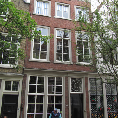 PAND met puntgevel (oorspronkelijke trapgevel XVII of XVIII) met goede pui (XVIII). Schuiframen in stijl XVIII.