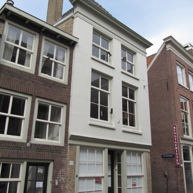 PAND met geverfd trapgeveltje van het Dordtse type (XVII d). In de verdieping Empire schuiframen; in de zolderverdieping roedenverdeling stijl XVIII.
