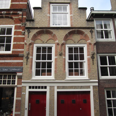 PAND met geverfd trapgeveltje van het Dordtse type (XVII d). In de verdieping Empire schuiframen; in de zolderverdieping roedenverdeling stijl XVIII.
