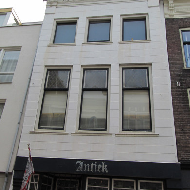 PAND met monumentale lijstgevel van vijf vensterassen (XVIII b) met middenrisaliet en hoekpilasters. Consoles van de kroonlijst laat Lodewijk XIV; deurpartij (deuren met trumeau, kalf en consoles) en omlijsting van het verdiepingsvenster in de risaliet Lodewijk XIV. Hardstenen plint.