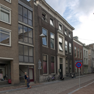 PAND met bakstenen lijstgevel (XVIII b) met middenrisaliet en hoekpilasters. Breedte vijf vensterassen. Hardstenen plint, eenvoudige houten omlijsting van deur en vensters middenvak, consoles onder de kroonlijst Lodewijk XIV. In de bovenverdieping schuiframen (XIX a).