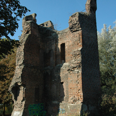 RUINE van het Huis te Merwede. Overblijfsel van het kasteel der Heren van de Merwede ten noordoosten van de stad. Verwoest waarschijnlijk bij de St. Elisabethsvloed in 1421.