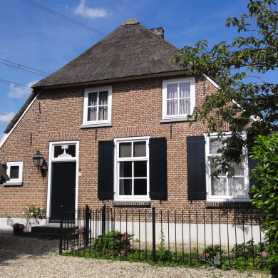 Boerderij onder met riet en pannen gedekt wolfdak. In de voorgevel vlechtingen en jaartalankers: 171.. Voorts in de voorgevel een venster met luiken en zesruitsschuifraam, een venster met vierruitsschuifraam en luiken en een zoldervenster met middenstijl en luikjes.
