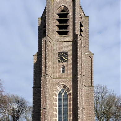Ned.Herv.Kerk. Overgebleven gedeelte van de in 1490 collegiaal gemaakte kerk (schip in 1583 afgebroken). Koor XVd met zuidelijke dwarsarm en hierbij aangebouwde sacristie; baksteen met zandstenen banden. Drie traveeën en 5/10 koorsluiting. Houten tongewelf. Westmuur modern.