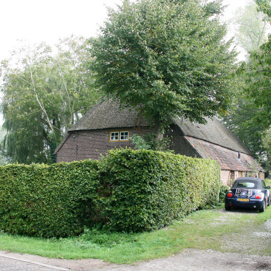 17e eeuwse boerderij onder met riet en pannen gedekt schilddak, dat aan de achterzijde is afgewolfd. Hoekhuis van het kortgeveltype met dwarsdeel. Vensterkozijnen, waaronder een kruiskozijn, en luiken bij de restauratie in 1973-1974 in de oorspronkelijke vorm hersteld. Inrijdeuren in de linkerzijgevel van de stal. In het inwendige een jaartal met de tekst I H S A.N.N.O. 1725. Grotendeels oorspronkelijk interieur met schouw, bakoven, bedsteden, heerd met oude plavuizen, een kelder met tongewelf en voorstal met sopketel en pomp.