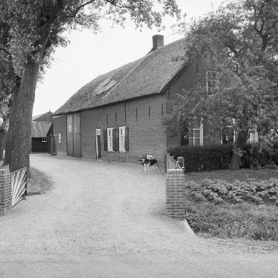 Boerderij uit het midden van de 19e eeuw onder hoog, met riet gedekt wolfdak. Links onderkelderd. In de voorgevel dubbele deur met panelen in omlijsting met hoofdgestel op consoles. De vensters van de beide zolderverdiepingen hebben zesruitsschuiframen. Bakhuis met spitsboog- en rondboogramen.