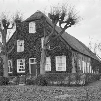 Boerderij, eerste helft 19e eeuw, onder hoog rieten wolfdak. Voorgevel met venster waarin 16- en 20-ruitsschuiframen. Vensters zijgevel met 12- en 9-ruitsramen en luiken.
