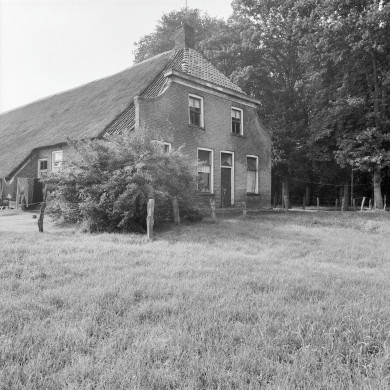 Eenvoudige 19e eeuwse BOERDERIJ van het dwarsdeeltype op rechthoekige plattegrond. Woon- en bedrijfsgedeelte worden gedekt door een aan voor- en achterzijde afgewolfd zadeldak met uilebord, het woonhuisgedeelte is deels met pannen belegd; topschoorsteen. De door een eenvoudige, rechtgeprofileerde goot met lijst afgesloten voorgevel met kwarthol profiel, heeft een even getoogde 19e eeuwse strokendeur met bovenlicht met gesneden levensboom en dito vensters met bovenlicht zonder roede-indeling; op zolderhoogte twee dito vierruitsvensters met middenstijl, boven de vensters 1,5 of 1 steens stekken. In achter- en zijgevels verschillendsoortige deur- en vensteropeningen, waaronder grote baanderdeuren met 9-ruits bovenlicht. Windveren; staafankers. Op het gedeeltelijk met keien bestrate erf staat een eenvoudig eveneens 19e eeuws stookhok.