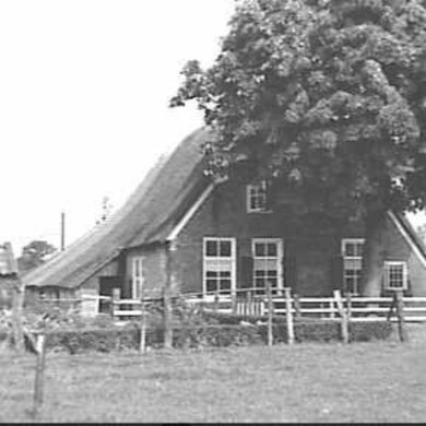 Vroeg 19e eeuwse boerderij met zijbaander en langgerekt, rieten dak. In de voorgevel van het woonhuis vensters met zesruitsschuiframen.