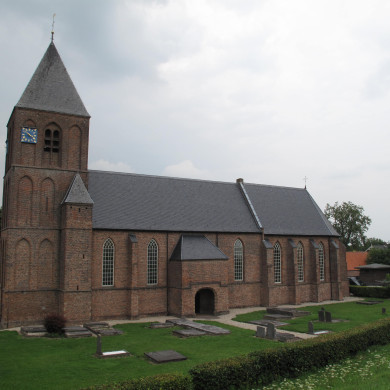 Herv. kerk. Eenbeukige, gotische dorpskerk, waarvan de bouw begon kort na 1384. Het schip en het hogere koor beide overdekt door houten tongewelven, waarvan dat over het schip dagtekent van de restauratie en oorlogsbeschadiging in 1944-'45. De kerk bezit: een preekstoel, tweede kwart 17e eeuw, waaraan koperen lezenaar en een herenbank met overhuiving en gesneden alliantiewapen, 18e eeuw.