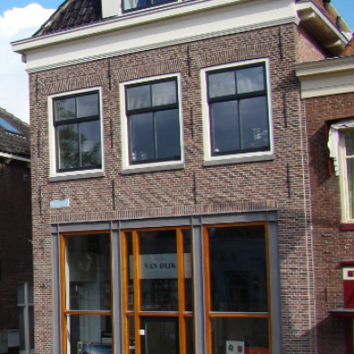 Huis met verdieping, houtskeletbouw met baksteengevels XVI. Rijke laatgotische voorgevel en sobere achtergevel. Interessante oorspronkelijke indeling hersteld. Opmerkelijk o.a. een z.g. drijvende kelder en een schouw met tegeltableau.