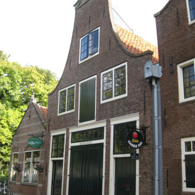Pakhuis, voorzien van klokgevel met een gebeeldhouwde bekroning in Lodewijk XIV-stijl, 1740.