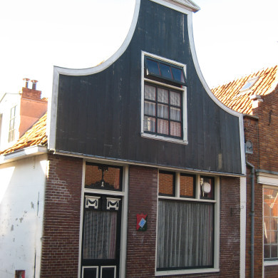 Pand met voorgevel met vlechtingen. Eenvoudig huis onder zadeldak.