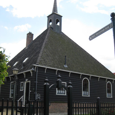 Herv. Kerk. Ongeveer vierkant houten gebouwtje in de vorm van een stelphoeve, 1658. Inwendig een geschilderd houten gewelf met o.a. de wapens van Holland, Westfriesland, Edam en Volendam. Preekstoel, XVIIa; doophek samengesteld uit fragmenten van omstreeks 1600, ijzeren doopboog, XVII. Eenklaviers kabinetorgel, eind 18e eeuw, met gebruikmaking van pijpwerk uit diverse perioden.