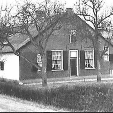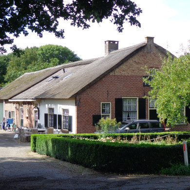 Boerderij van het langhuistype, met door verbouwing ontstane onregelmatige kopgevel, met vlechtingen gemetseld. Aan weerszijden van de voordeur zesruits-schuifvensters met luiken behangen. Rechts een gedeelte met opkamer. Met riet gedekt.