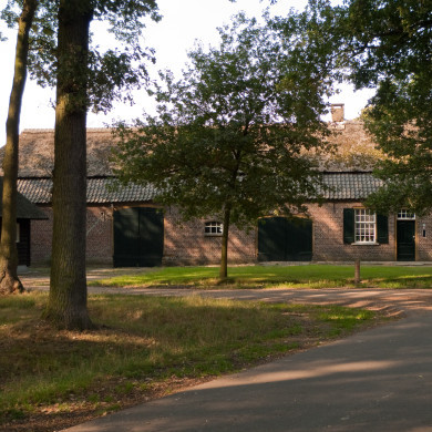 Brabantse langgevelboerderij uit de eerste helft van de negentiende eeuw. Met riet en pannen gedekt wolfsdak. In het woongedeelte vensters met luiken en twintig- ruits-schuiframen. Op het erf een houten wagenschuur en een bakhuis.