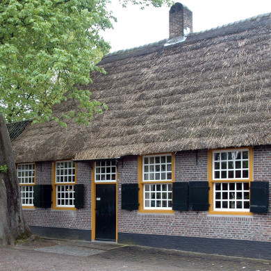 Boerderij van het Kempische langgeveltype, onder rieten schilddak. Ramen met kleine roedenverdeling en benedenluiken. 18e eeuw.