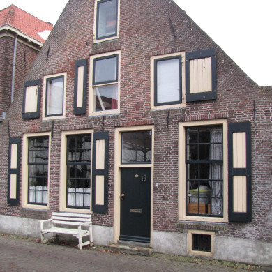 Pakhuis, gedateerd 1839, onder hoog afgewolfd schilddak. Oude kozijnen.