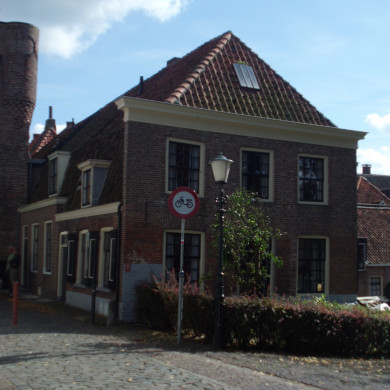Woonhuisje, aansluitend bij de Vischpoort, van alleen begane grond. Gesneden deur (ca.1800). Stoephekken.