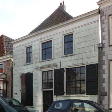 Huis (zeventiende eeuw?) met gepleisterde lijstgevel, parterre met zolderverdieping. Gesneden deur met bovenlicht en gesneden latei in omlijsting (ca.1800). Schuiframen. Keistoep.