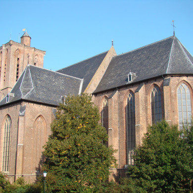 Toren van de Ned. Herv. of St. Nicolaaskerk (XIV d begonnen). Klokkenstoel met gelui van drie klokken, waarvan één van J. Borchhardt, 1770, diam. 129,3 cm., één van J. Knuisen (G. Schimmel), 1694, diam. 117 cm. en een hergoten klok van P. Seest.