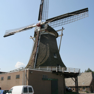 Gaaf, uit 1876 daterend BOERDERIJ-COMPLEX bestaande uit: -boerderij van het middenlangsdeeltype, opgetrokken in baksteen en onder met riet gedekt wolfdak, waarvan de dakvoet bij het schuurgedeelte lager ligt dan bij het woongedeelte. Kopgevels met vlechtingen.