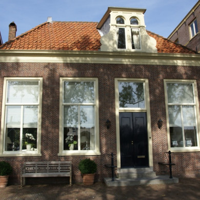 Pand met recht afgesloten fragment (herbouw ?) van een tamelijk rijk versierde gevel uit 1646. Pui van ouder huis op gesneden puibalk; fries met gevelstenen o.a. embleem van brouwerij de Vijfhoek. Boogtrommelvulling en oeil de boeuf-omlijstingen.