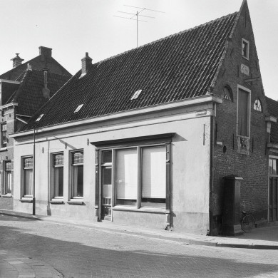 Aan de Peperstraat gepleisterd en verminkt pand met topgevel aan de Karnemelksluis, waarin twee gevelstenen. XIX herbouwd.