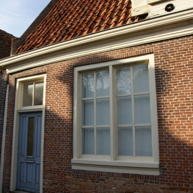 Eenvoudige laat 18e eeuwse woning onder dwarsdak.