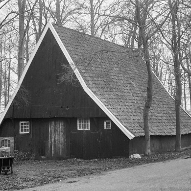 Forse, grotendeels met planken gedichte vakwerkschuur. Gelegen op erve "Het Schukkink"