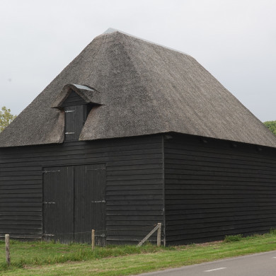Boerderij, 18e eeuw, bestaande uit een dwars woonhuis van zes vensterassen, gedekt door een pannen schilddak en hierachter een stal onder rieten wolfdak. Vensters met luiken, wisseldorpels en 24-ruitsramen. Twee schuren van gepotdekselde delen op het erf.